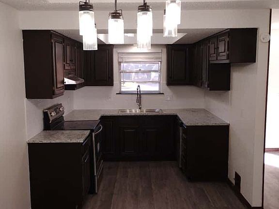 Step inside to discover fresh updates throughout, including granite countertops, new vanities, and all-new plumbing fixtures. The home features durable vinyl flooring (no carpet!). The kitchen comes equipped with a stove, and the laundry area is washer-and-dryer ready for easy move-in.