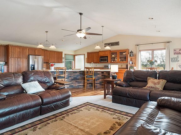 This amazing 3BR, 2BA 2 car garage attached & 2 car detached garage, there is plenty of room for all of your vehicles & storage needs. Plus, w/ a massive 50x60 metal building w/ a concrete floor, you'll have endless possibilities for hobbies. Step inside & be greeted by an open concept LR, DR, & kitchen. Kitchen has custom wood cabinets that have storage for all of your essentials. Brand new stainless steel appliances w/ a huge center island perfect for prepping meals or serving family dinners. Oversized primary BR w/ abundant natural light & huge walk in closet. Downstairs you have a cozy brick wood-burning fireplace living room - perfect for those chilly nights, w/ sliders leading out to the backyard. This property also features multiple sheds including one w/ 16x50 - perfect for storing machinery or equipment - as well as 2 machine sheds measuring at 20x32 & an impressive 50x60x14 pole building. With so much additional space available on this property, there's no limit to what you can do! Take advantage of having a U-shaped driveway providing easy access in & out while leaving plenty of room for kids to play outside safely. And speaking of outside fun, imagine spending summer days lounging by your own pool or watching little ones play on a swing set in the spacious backyard. Located just 7 mins from the charming town of Grinnell & less than 4 mins to Interstate 80, this home offers convenience & privacy all at once. 13 Mo HWA Platinum Home Warranty included!
