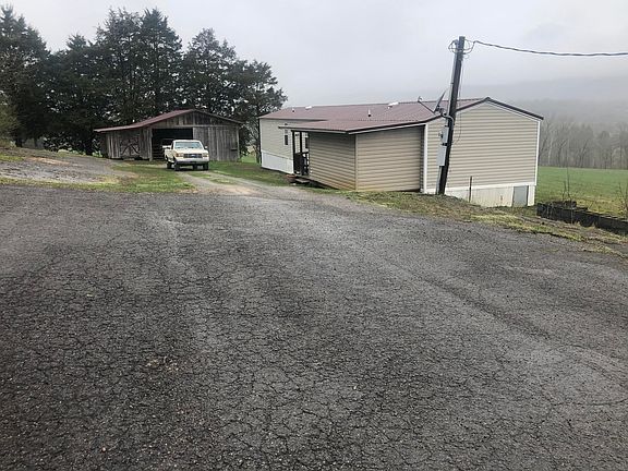 Privacy and an amazing view both come with this manufactured home sitting on approximately 4 acres; 3 bedrooms; 2 bathrooms; laundry area; living room and kitchen; covered front and back porch; central heat and air; double pane windows; plus attached large storage room; detached garage with storage shed; fruit trees on property; beautiful views; paved parking lot.