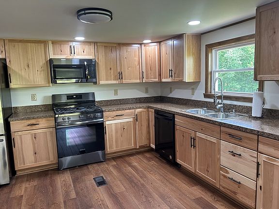 Manufactured ranch home in serene rural setting. Spacious and open lot. Includes heated 26' x 30' block 2+ car garage with lean-to extension w/overhead door. Kitchen, dining room, bedrooms, bathrooms, and all other living spaces completely remodeled in 2024. Main building is set over partial basement. 52x8 addition enhances living space. All new appliances including washer and dryer. Perfect blend of comfort and countryside living.