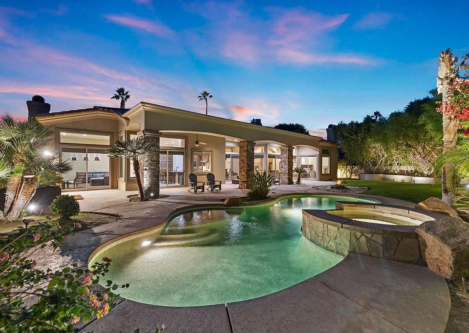 INCREDIBLE VALUE -- OWNED SOLAR!Discover timeless luxury in this custom-built Tuscan estate, located within The Estates at Desert Falls Country Club--an ultra-private enclave of just 23 distinguished residences. Spanning over 4,700 square feet, this refined home sits on a rare and uniquely positioned lot offering exceptional privacy, tranquil golf course vistas, and unobstructed mountain scenery. Tucked behind a secluded second set of gates, this residence offers true retreat-style living.Step inside to an impressive open-concept layout with 12-14 ft. soaring ceilings, flooding the Great Room and kitchen/family area with natural light. The gourmet kitchen features an oversized granite slab island, rich custom cabinetry, and a warm secondary fireplace--perfect for gatherings. Expansive glass sliders open to a serene backyard oasis with a sparkling pool, raised spa, and sweeping panoramic views.The luxurious Primary Suite is a sanctuary of comfort, complete with a private sitting area, a third fireplace, and an elegant spa-style bathroom featuring a soaking tub, separate vanities, and dual walk-in closets. A separate attached casita with its own private entrance--and its own fireplace--offers ideal accommodations for guests, multigenerational living, or a private office.Additional features include a gated front courtyard, a third en-suite guest bedroom, and meticulous craftsmanship throughout the home.Residents of The Estates at Desert Falls enjoy an unmatched lifestyle with access to a state-of-the-art fitness center, tennis and pickleball courts, and a championship resort golf course.Welcome home to Desert Falls Estates--where luxury, privacy, and lifestyle converge.