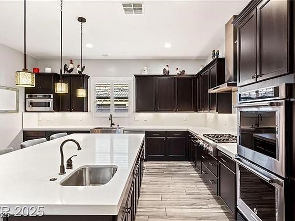 Welcome to an exquisite two-story residence located within Rhodes Ranch. This meticulously upgraded home offers a harmonious blend of luxury and comfort. The gourmet kitchen is a chef’s dream, featuring a spacious island ideal for dinner parties, complemented by stainless steel appliances, a walk-in pantry, and a convenient butler’s pantry. This thoughtfully designed home offers the convenience of laundry rooms on both levels and two ensuite bedrooms, providing privacy and flexibility for all. The primary suite is a true retreat, showcasing a generous walk-in closet and dual vanities, embodying the essence of luxury living. Additional highlights include a 3-car garage, Solar panels, private front courtyard and beautiful landscaped backyard, perfect for embracing the indoor/outdoor lifestyle. This exceptional home is move-in ready and poised to provide a lifestyle of unparalleled comfort and elegance. Don’t miss the opportunity to make it yours.