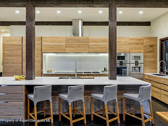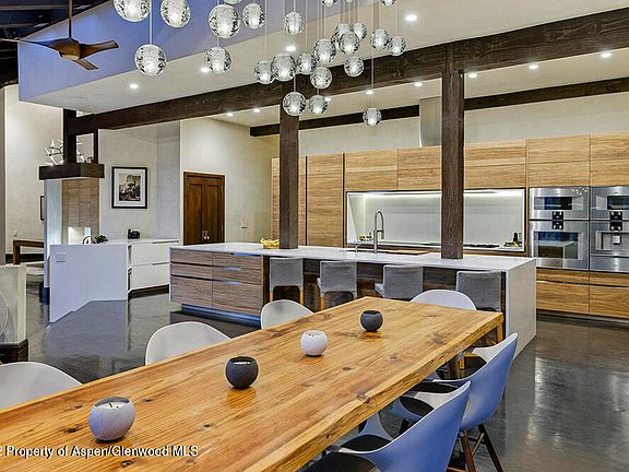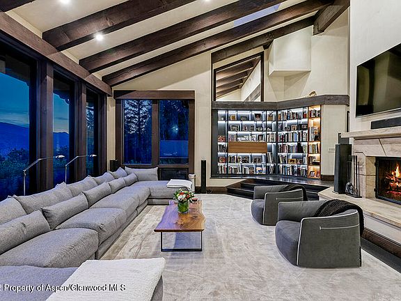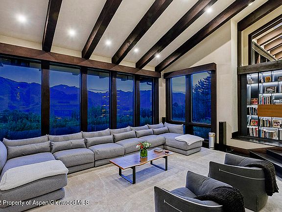 Unique opportunity to own the most striking lot on Red Mountain. The unrivaled views encompass Independence Pass to Mount Sopris and can be enjoyed from almost every room in the home. The 1.69 acre lot offers a beckoning entry with a large flat, manicured lawn for family time and entertaining. Beautifully remodeled in 2021, the home features an open floor plan that capitalizes on the panorama. The primary suite is located on the main living level with a generous sitting area, a flex space currently used as a fitness room, his and hers closets, and a beautifully appointed luxurious bath. The two spacious guest suites on the upper level boast beautifully appointed baths, wood burning fireplaces, and private decks. All six bedrooms are en suite. Great entertaining spaces including a (more)playroom that could be converted to a seventh sleeping area, entertainment/television room, and home office. playroom that could be converted to a seventh sleeping area, entertainment/television room, and home office.