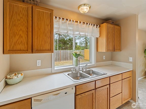 Awesome Location & Great Price! 3-bedroom, 2-bath desirable 1-level that offers fantastic features & spacious feel: Bright, cheerful kitchen w/skylight, solid wood cabinets w/xtra storage/display on top. Large liv rm, laundry hookups conveniently located off xtra wide hallway. Primary bedroom has attached bath w/shower & 2nd bath off hallway. Sep dining w/slider to backyard, 2 sep covered patios (front and side!), a fully fenced, large, level yard that backs to a Greenbelt for ultimate in privacy! Flower Garden in front w/ established strawberries & Rhododendron. Attach 2 Car w/shop bench. Natural Gas furnace. New paint & crawl space. 1 min to dwntwn Shelton, shops, stores, schools, med & Hwy 101. Eligible for 0% down USDA. This won't last!