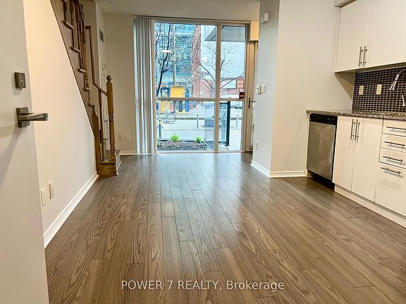 Modern Townhouse Style 2 Bedrooms Suite At Fly Condos. Freshly Painted, New Laminate Flooring on Second. W/Out Porch, Steps To Ttc, Union Station, Rogers Centre, Gardiner, Lakeshore And Minutes To The Financial District And Theatre District. State Of The Art Amenities. 24 Hr. Concierge, Guest Suites, Exercise Room, Spinning Room, Yoga/Pilates Room, Sauna, Rooftop Patio, And Theatre/Media Room. One Locker Included.