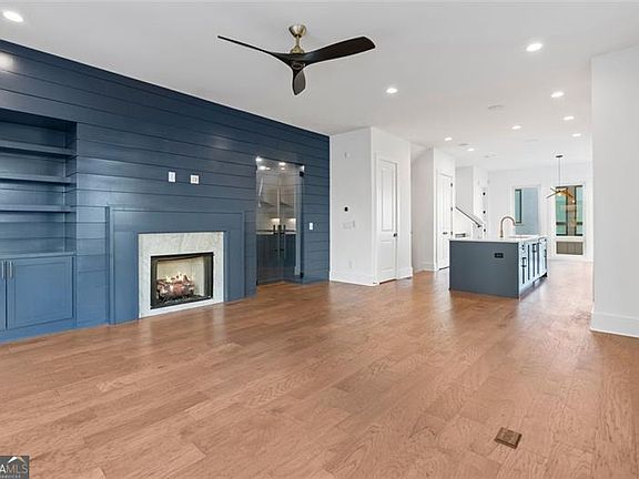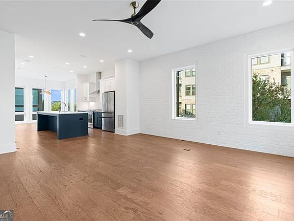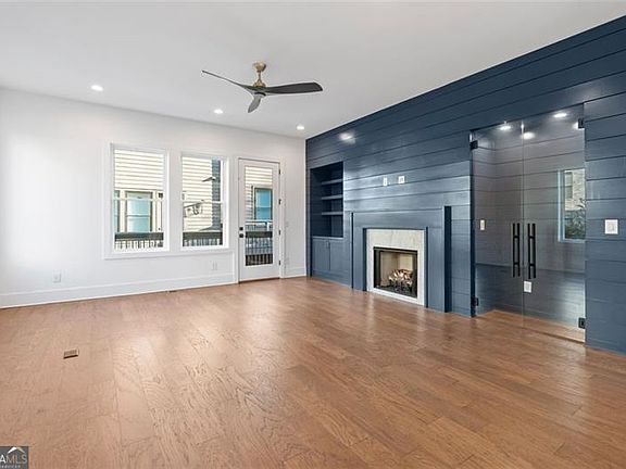 Experience elevated in-town living in this beautifully designed three-story end unit townhome, where natural light fills every level and every finish has been thoughtfully selected. The open layout features hardwood floors, 9-foot ceilings, custom window treatments, and sophisticated designer touches. A chef's kitchen with solid surface countertops and high-end appliances flows into the dining area framed by floor-to-ceiling windows. The spacious family room is perfect for hosting, complete with built-ins, a wine cellar, fireplace, and a private balcony that extends your living space outdoors. On the lower level, a built-in office creates the ideal setup for working from home. Upstairs, the primary suite features dual walk-in closets and a spa-inspired bath with quartz double vanities, a frameless glass shower, and a private water closet. Secondary bedrooms and bathrooms are equally generous and beautifully appointed. Enjoy the added benefits of a fenced yard, Sonos sound system throughout, and a two-car garage with extra storage. Located directly on the BeltLine in Madison Yards, you're just moments from Publix, AMC, Kilwins, Muchacho, First Watch, and more. This is the lifestyle buyers are searching for-seamless, stylish, and perfectly positioned.