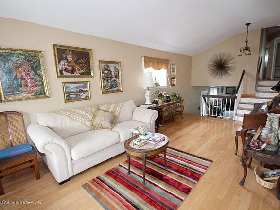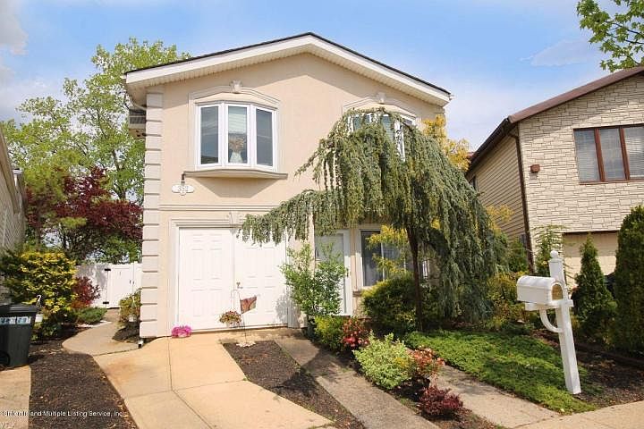 Call 718-619-5701 to view.Rare, and unique contemporary style 2 family stucco home with large two bedroom apartment. Features large, bright open and airy floor plan with spacious living/dining room area with hw floors and cathedral ceilings, eat in kitchen, and few steps up to next level with full bath, MBR with private 1/2 bath and wic, 2 additional bedrooms. Also, has family room on first level with wood burning fp and sliders to spacious wrap around yard, large unfinished basement, attic and additonal storage closet. Renovations: Siding, and stucco 2003, Roof, (30 year Warranty) gutter, etc. 2008, PVC fence 2008, Water Heaters approx. 2013. Please note there are separate heating and water heater units for home and apartment. Park grounds down block for all to enjoy! Close to all! Call 718-619-5701 to view. Click link below to view. NEGOTIABLE.