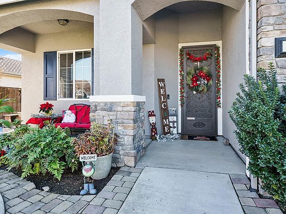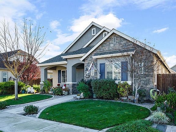 Immaculate home in the sought after Cornerstone development. Many desirable features such as crown molding, wainscoting on entry hall walls, wood & tile floors, newer carpet throughout, ceiling fans, two tone paint, gas log fireplace, tall ceilings, master offering two closets (one being huge walk-in), exterior painted this year, decorative security doors on front & back, sunscreens, alarm system with cameras, garage with epoxy painted concrete floor & overhead storage. Kitchen beautifully updated in 2020 with new quartz counter tops, full mosaic back splash, double ovens & painted cabinets with new pull handles. Bathrooms updated in 2020 with new faucets, sinks, tub, shower pan, shower doors, marble on counter tops, marble bath & shower surrounds. Large laundry room with sink & storage closet. Darling yards with cobblestone pavers, stone walkway, a fountain, a shed, lush plants, artificial turf, covered porch & patio. Close to parks, schools, shopping, dining & easy highway 99 access. 2021-12-18