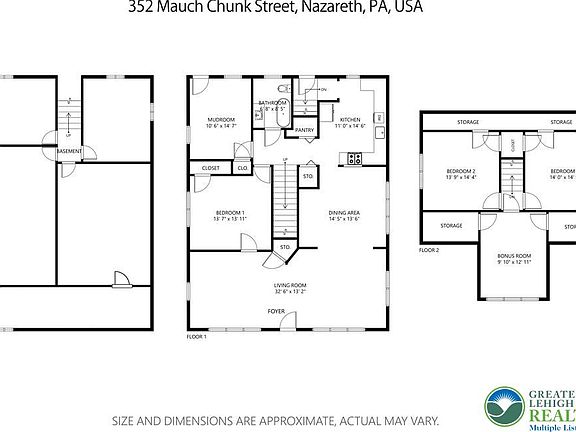 MUST SEE! This charming historic Craftsman in the Nazareth Area School District blends classic character with convenient modern updates. Situated on a spacious corner lot, the home features beautiful wood floors, 9’ ceilings, and abundant natural light throughout. The updated kitchen offers granite countertops, stainless steel appliances, and plenty of storage. A main floor bedroom and a dedicated mudroom/laundry room add everyday convenience, while the full bath showcases a timeless clawfoot tub perfect for relaxation. Upstairs, you’ll find two additional bedrooms and a versatile bonus room—ideal for a home office, playroom, or guest space. The full unfinished basement includes four extra rooms, offering endless potential for storage, hobbies, or future expansion. Outside, enjoy the covered front porch and take advantage of the detached garage/workshop. With its warm, welcoming feel and thoughtful improvements throughout, this home is ready for its new owners. Explore the video & virtual tours and schedule your private showing today!