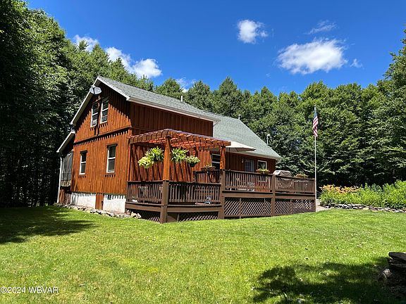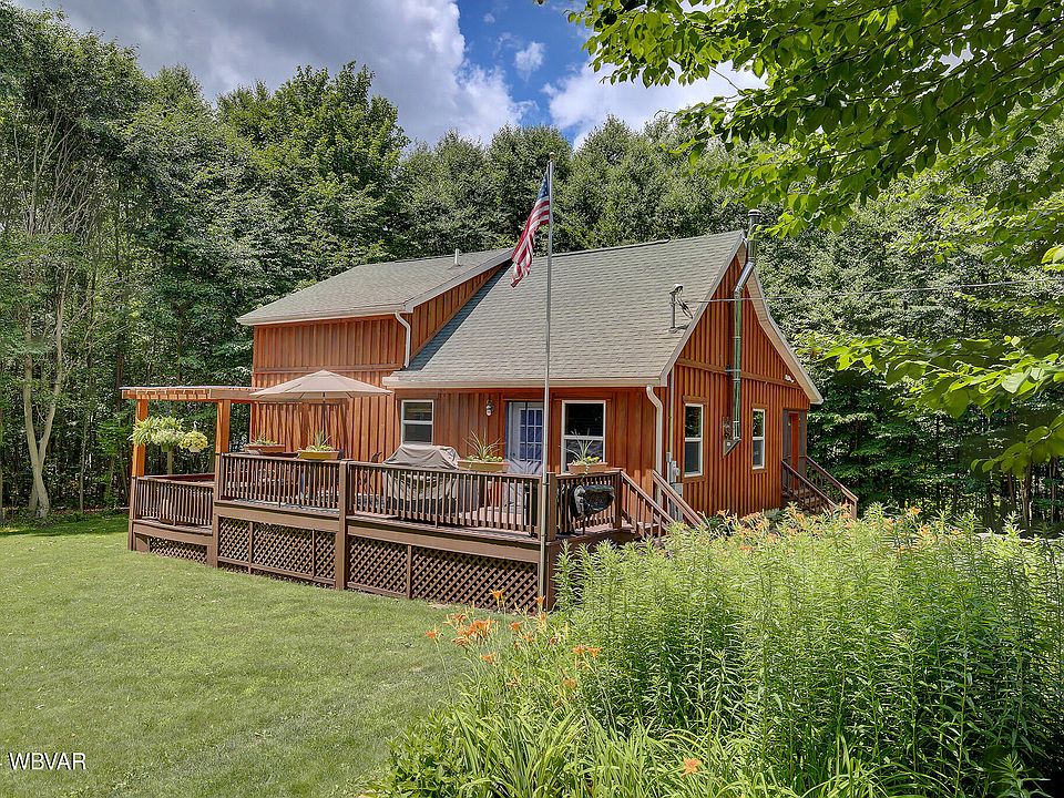 Nestled steps away from State Game Land #13, this meticulously maintained cottage offers wonderful outdoor living spaces and is perfect for year-round enjoyment. The home features an open concept design with a charming woodstove in the living room, 3 comfortable bedrooms, 1 full bath on first floor and 1/2 bath on upper level. Experience the tranquility of nature while enjoying the modern comforts of this delightful woodland retreat. Current owners have lived here since 2010 full time and have enjoyed over the years. Wood shop/shed on the property along with a tunnel building for