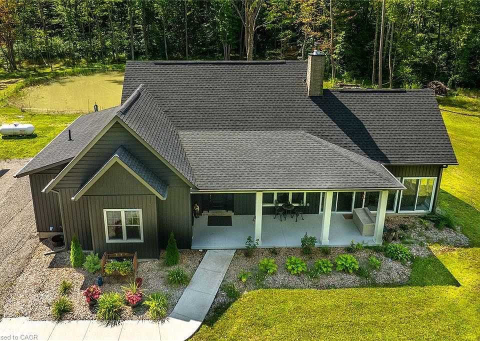 Perfect country package! Rare opportunity to own a secluded 52-acre multi-purpose property that is frequented by deer, wild turkeys, rabbits, and various bird species. The land comprises mature forest and wetlands, including maple, ash, and oak trees, with nature trails and road frontages on three sides for privacy. The property features a 1436 sq ft bungalow, custom built in 2020, with two main floor bedrooms, two and a half bathrooms, and an unfinished basement suitable for additional living space. Mechanics, contractors or hobbyists will enjoy the 50’x30’x18’ clear height workshop equipped with a car hoist. The main floor has an open concept with a cathedral ceiling finished in tongue-and-groove pine, an eat-in kitchen with custom maple cabinetry, quartz countertops, a bay window, and stainless-steel appliances. The living room includes a wood fireplace, scraped hardwood floors, and patio doors to a rear deck overlooking the aerated pond and wooded area. The great room provides panoramic outdoor views through wall-to-wall sliding patio doors, a cathedral pine ceiling, and an electric fireplace. Both main floor bedrooms are spacious, each with walk-in closets. The primary bedroom has an ensuite, and patio doors that access the deck. The basement contains laundry facilities, a utility room, storage, cold cellar, and a rough-in bathroom with a sewage ejector. Notable amenities include a hi-eff propane furnace, central air, a 2,500-gal water cistern, indoor and outdoor sump pumps, a modern septic system, and 100-amp electrical service. The property is situated on a year-round paved road in a tranquil setting surrounded by a serene forest, with landscaped grounds, vibrant perennial gardens, and a large driveway that can accommodate multiple vehicles and a boat or RV. Located near Dunnville’s amenities, and within 30–60 minute commutes to Niagara or Hamilton. This property offers a cottage-like ambiance for those interested in outdoor recreation and nature!