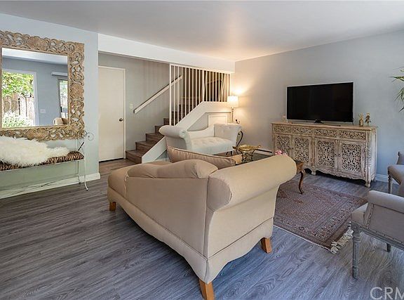 Great Opportunity to own a 2 bed 1.5 bath corner unit in desirable Miraleste Canyon Estates! Downstairs find an open concept dining and living area with the sliding glass doors open to the front patio. A beautiful kitchen with white cabinets, subway tiles back splash and quartz counter tops. NEW laminate floors and NEW paint throughout. Upstairs you will find 2 large bedrooms with tons of closet space. Both bedrooms have their own air condition window units. You will love the convenience of your own in-home laundry area, washer/dryer in the unit. It also has 2 side-by-side parking spots, located near the unit (#356 & #357). Complex offers 3 pools, 2 hot tubs, one children's pool, club house, billiard & ping pong tables, 2 gyms, and beautiful landscape. Simply turn the key, this lovely condo is move-in ready!