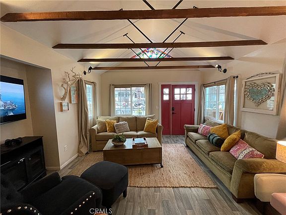 Beautiful Catalina Island Single Family Home. Located only two Blocks from Avalon Harbor and walking distance to all of Avalon's Shops and Restaurants. This charming two bedroom, one bath Avalon Cottage, features a large living room with plenty of windows for lots of light, as well high vaulted ceilings. The Cheerful Galley Style kitchen is off the living room and features a bar dining area that looks thru to the kitchen. The single bath is across the hall from the kitchen and has a porcelain tub/shower, single sink vanity, and toilet. The first bedroom/guest room, is located at the end of the hall and has large bunk beds, flat screen wall mounted TV, as well as a side door leading to the side yard. You enter the Master Bedroom from the guest bedroom. In this bedroom you will find plenty of closet space a queen size bed. The front porch has a outdoor patio table and umbrella for the hot summer days, or a nice evening BBQ. This property features a gas tankless hot water heater for on demand hot water. The back roof patio needs some work, but would be outstanding when repaired.