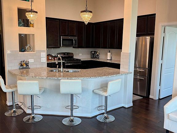The walls of windows in the living area and in the primary bedroom, remind me of the glass house my dad always promised he would build for me. Amazing Castlerock home located in the desirable Santa Rita Ranch, which is full of amenities and more amenities six swimming pools to date Pickleball courts parks, playgrounds waterslides walking trails what an amazing place to live! As soon as you step through the door, you are welcomed into a spacious foyer that softened the transition from open sky to your home deeper into the house. The feeling of spaciousness never leaves as the open floor plan keeps rooms, air and comfortable and full of natural light the kitchen Host granite countertops, stainless steel appliances, and abundant cabinet space and a freestanding gas range just as the plan would suggest this kitchen is a perfect place to entertain cook and enjoy an evening with your friends or family. The family room as well as the primary bedroom has walls of windows and window lights above each window letting in beautiful natural light or you can watch a full moon the backyard backs up to what once was a pasture our green belt and it has lots and lots of very large trees behind the fence line. I know you would love to make this beautiful house your home!