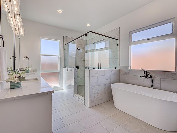 The primary bedroom is generously sized with sliding glass doors to covered patio, a spa-like bathroom and large master closet.