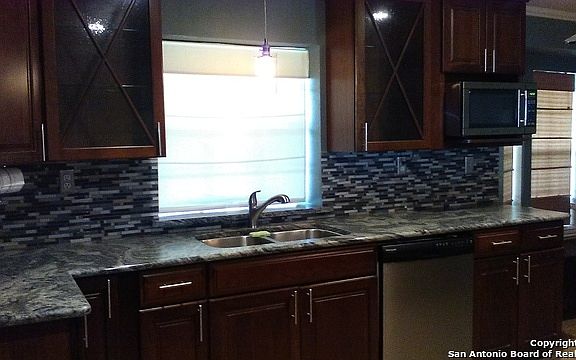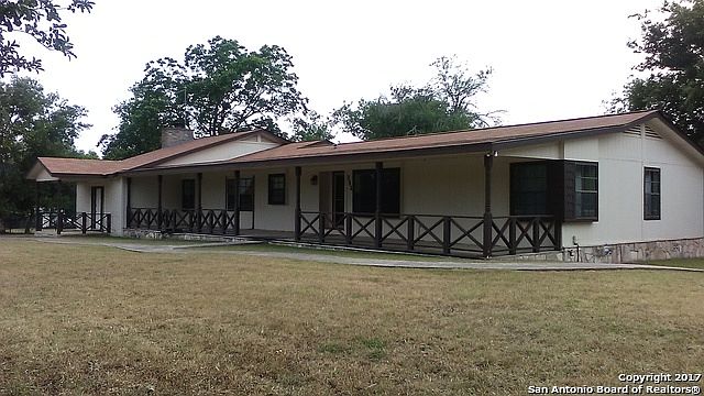 BEAUTIFULLY updated house on an ACRE, with wide front porch to enjoy the trees, deer and view of golf course across the street. Nicely FENCED backyard & screened-in porch for pets. GORGEOUS kitchen with granite countertops, stainless fridge & appliances. STRIKINGLY designed bathrooms. Huge GREATROOM with cathedral ceiling and knotty pine walls, grand fireplace and wet-bar. Indoor HOT TUB. 2 storage buildings. NEW ROOF 2015! Fresh paint. "SMART" alarm system with cameras! Close to town & Medina River Park!