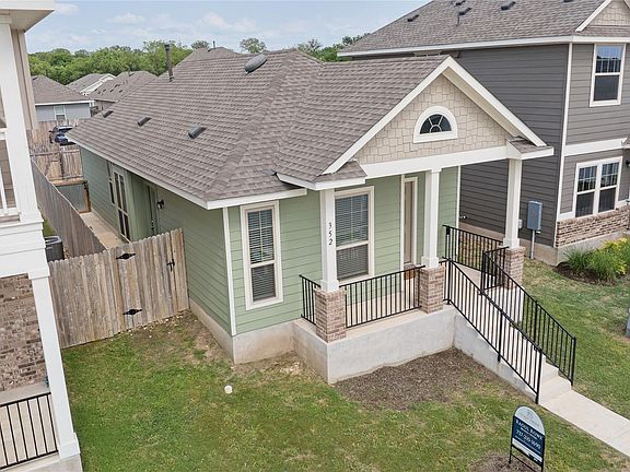 This 2-bed, 2-bath home in Blanco Vista was built in 2022 and offers just over 1,000?sq?ft of functional, low-maintenance living. The layout features an open living, dining, and kitchen area with quartz countertops, upgraded cabinetry, and durable vinyl plank flooring. An oversized front porch provides additional outdoor space, while the backyard backs to a greenbelt for added privacy. The primary suite includes its own full bath and good natural light. Blanco Vista residents have access to neighborhood parks, a community pool, trails, and direct river access at 5-Mile Dam Park. Conveniently located near I-35, downtown San?Marcos, and within commuting range of Austin, this home is a solid fit for first-time buyers, downsizers, or investors.