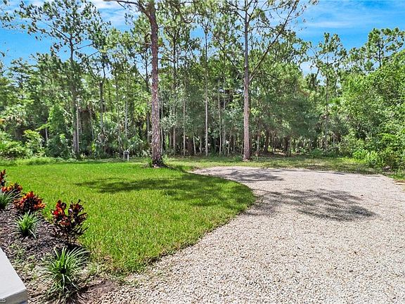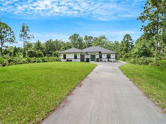 Discover luxury and convenience in this stunning new construction ranch-style home in Golden Gate Estates. Spanning 3,165 square feet, this traditional concrete block residence sits on 1.14 acres and offers four spacious bedrooms and three beautifully appointed bathrooms. The custom kitchen features quartz countertops, custom cabinets, a large island with outlets, and brand-new stainless steel appliances, complemented by a sizable pantry. Elegant porcelain tile flooring flows throughout, while smart lights, tray ceilings, and custom closet cabinetry enhance the interior. The master suite includes dual sinks and premium fixtures in the en-suite bathroom. Impact-resistant windows and doors, French-style doors, and smart home features provide style. The property is designed for entertaining, with an outdoor kitchen featuring a wine cooler, two fans on the porch, and an expansive backyard with a sprinkler system. Additional amenities include an epoxy-coated garage floor, an assault driveway, gutters around the property, and a Reverse Osmosis water system. Experience the perfect blend of luxury and functionality in this exceptional home.