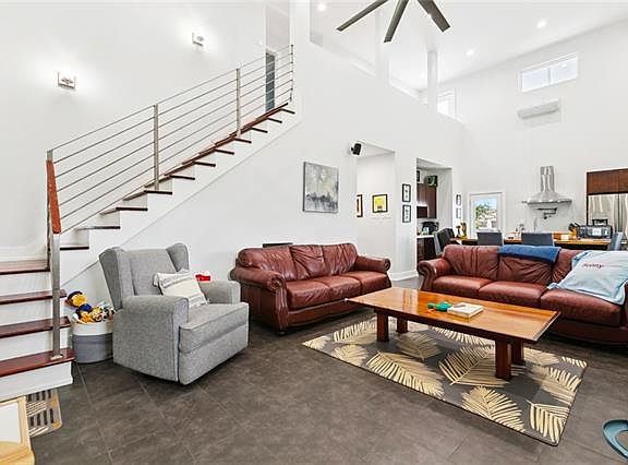 Two covered carportsSleek stone surfacesTwo upper deck porchesCustom tile showersModern feelGenerous yard spaceModern fixtures