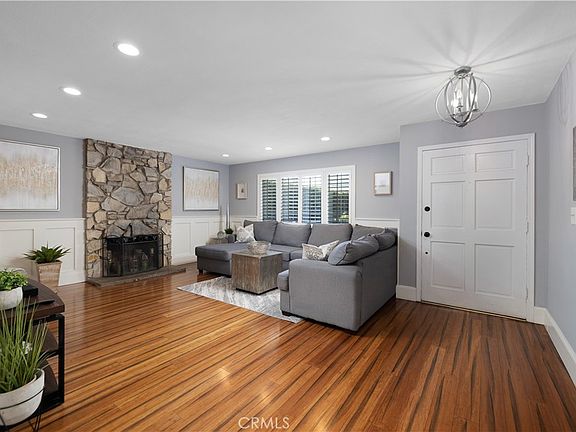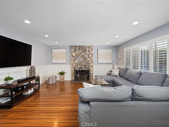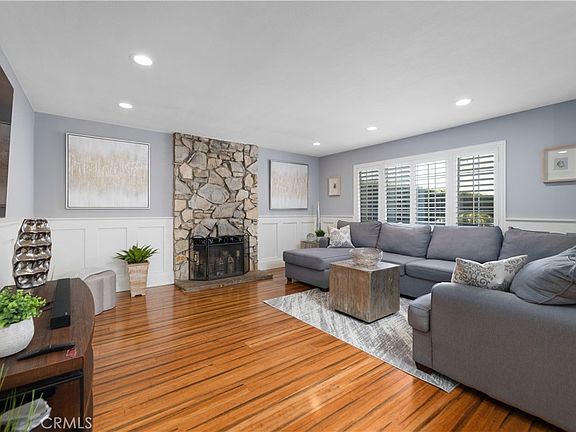 Welcome to this charming “Harvard” model in the prestigious area of College Park East. The spacious living room boasts attractive white wainscoting on the lower half of the wall, a natural stone fireplace (gas & wood burning), and a neutral laminate wood flooring which also flows into the family/dining areas. The beautifully appointed kitchen features cheerful “white” cabinetry, quartz countertops, custom marble backsplash, stainless steel appliances with gas cooktop, microwave/oven and a breakfast bar! Just off of the kitchen is a wonderful over-sized pantry and indoor laundry area w/storage cabinets. The bathrooms have been updated…one with attractive tumbled marble shower/tub & new vanities, the primary has recently been remodeled with beautiful decorator tile, and new cabinetry. The low maintenance backyard features a large patio w/cover perfect for outdoor BBQ’s and year-round dining, and an artificial turf grass area for the kids to play, plus a large side yard. Additional amenities include large corner lot location with attractive custom stone hardscape, smooth ceilings, recessed lighting, copper plumbing, newer heat & AC plus new ducting in the attic, raised panel doors, dual pane mullioned windows & French doors and so much more! Highly acclaimed Los Alamitos School District! A great starter home for a family or desirable single level for those not wanting any stairs…it’s a real winner!!!