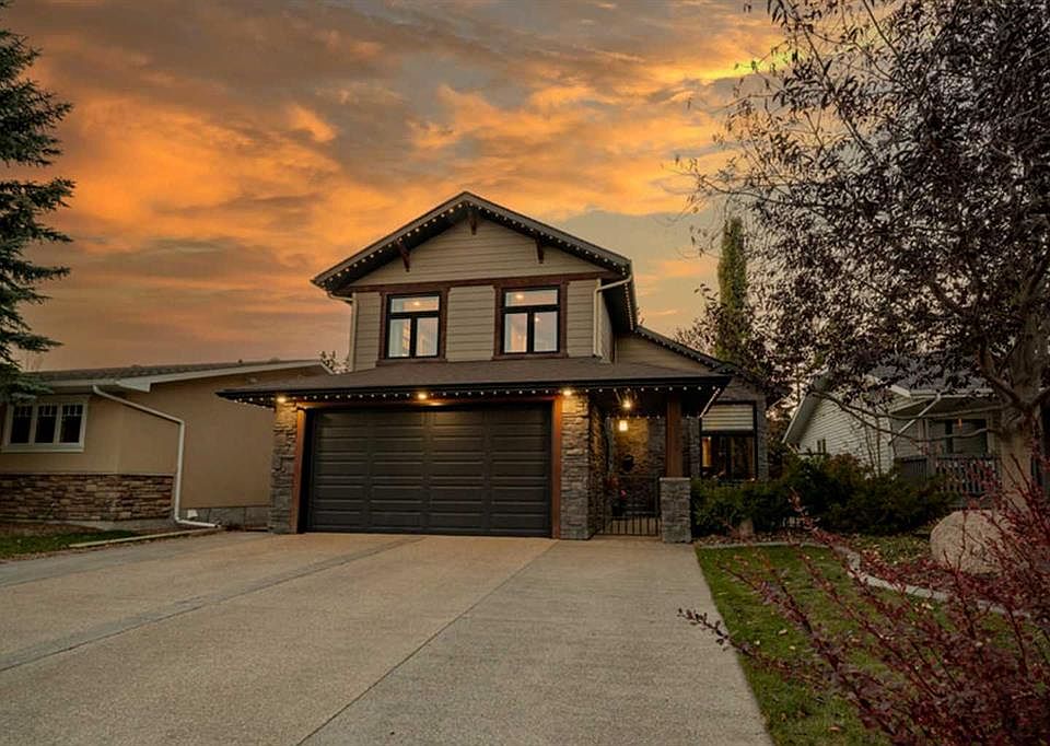 Immaculate 1 1/2 storey in the sought-after Mountview area. Close to schools and the Waskasoo recreation & trail system. This home offers luxury modern amenities and privacy. Fully developed with a gorgeous kitchen with plenty of alder cabinets, quartz countertops, eating bar, wall oven, built-in cooktop and stainless steel appliances. Dining area is a large size, big enough to fit a family-size table and a gas fireplace with a rustic log mantle & custom bookshelves on both sides & patio doors to a covered deck for outdoor cooking, a lower patio space and a pergola that surrounds the hot tub. Custom shed with lots of storage. This is all surrounded by numerous mature trees and beautiful outdoor lighting, custom concrete work in the private front patio area and back has been updated as well. Main floor laundry with cupboards and coat hooks/ cubbies for extra storage. Another 2pc bathroom is on the main floor. The updates continue throughout the home. Upstairs has 2 large bedrooms with walk-in closets and custom shelving, a 4pc bath with heated tile floor & quartz counters with a soaker tub. The primary bedroom is king sized with garden doors to its private maintenance-free deck, a walk in closet, spa-like ensuite with custom tiled shower, sun tunnel for extra natural lighting, a built-in armoire closet, dual vanities & heated tile floor. The basement is fully developed with a large family room with surround sound & a gas fireplace, a workout room , and a 3pc bath with heated tile floor. More upgrades include, heated garage with storage cupboards, HE furnace & hot water tank, Pure Air Purification System, solid wood doors, custom window coverings (including remote control), Gemstone lighting, new maintenance-free eavestroughs, Hardie Board siding, beautiful stone work and a custom wrought iron gate in the front. A Must See !