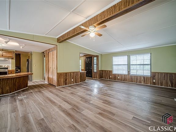 BACK ON MARKET DUE TO BUYERS FINANCING FALLING THROUGH. Freshly Renovated 3 Bedroom/2 Bathroom Modular Home situated on 2.6 Acres. This Home features an Eat-in Kitchen w/Breakfast Bar/Stainless Steel Appliances/Walk-in Pantry**Oversized Family/Great Room perfect for a large sectional sofa**Formal Diningroom w/Built in Cabinets**Great size Owners Suite featuring a Walk in Closet/Dual Vanities/separate Garden Tub and a separate Shower**Split Bedroom plan featuring 2 additional Bedrooms and 1 additional Full Bathroom**Laundry/Mudroom w/additional cabinets & sink**Brand New Front Porch & Back Porch. The Renovations include New Paint throughout*Flooring throughout*New Light Fixtures and Hardware throughout*New Roof*New HVAC*New Asphalt Driveway*Fresh Landscaping. Home is on public water and has 2 wells on the property. Conveniently located to Shopping, Dining, Hwy 138 & Interstate I-20. Please come and take a look.
