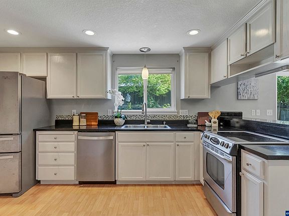 This is it! A wonderful home in the sought after Oak Knoll neighborhood located just around the corner from 2 parks. The spacious kitchen is light and bright with wall of cabinets, eat-at-bar. and desk area. Enjoy the updated bathrooms and new carpet throughout. Central air conditioning will keep the whole family comfortable year-round. The roomy fully fenced backyard has 2 patios. and is perfect for BBQ's. The terraced garden beds are just waiting for your final touches.