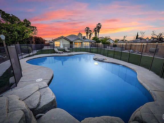 This stunning four-bedroom, 2.5-bath home in Northwest Bakersfield is a rare find, situated on over half an acre with a spacious layout and impressive features. A grand double-door entry welcomes you into a home with soaring ceilings and an open-concept design. The kitchen seamlessly connects to the living room and features double ovens, perfect for entertaining. The primary suite is a true retreat, boasting crown molding, a tray ceiling, a luxurious soaking tub, a walk-in shower, dual vanities, and a large walk-in closet. Additional highlights include a central vacuum system, low-maintenance front yard, rain gutters, window shutters, ample storage sheds, an aluminum carport for a boat or extra vehicles, RV parking, and plenty of space for gardening. The serene, park-like backyard is a true oasis, featuring a covered patio and a beautiful Pebble Tec pool with removable fencing. This incredible property is close to shopping, restaurants, and great schools.