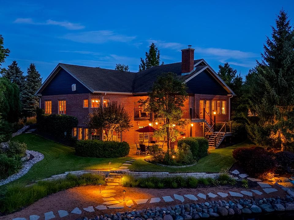 Prepare to be amazed by this impeccably built over 5,000 sq ft brick home on the shores of private-access Spring Lake! With 4 spacious bedrooms and a true 3-car garage leading to a spancrete basement workshop, this home was crafted for both luxury and function. The chef's kitchen is a culinary masterpiece, complete with premium appliances and solid surfaces. Retreat to the stunning primary suite featuring a walk-in shower, custom closet, bonus room, and patio access. Lower level includes room for a full 9 ft pool table, fully functioning theatre and walk out to lower deck. Lower deck includes outdoor fireplace. Private beach entry to lake with great fishing . Enjoy peaceful water views, quality craftsmanship, and a setting that feels like a retreat. This is the one--come see it today!