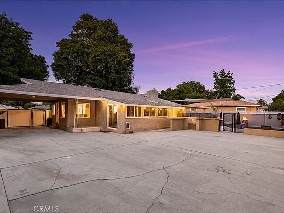 Centrally located in the heart of Riverside with quick access to downtown, the 91, and 60 freeways, this fully renovated home offers the perfect blend of function and style. Boasting a massive four-car garage with workshop, large gated carport, and extra parking, all set on a quiet tree-lined street. Inside, the open-concept layout features a beautifully remodeled kitchen with black stainless steel appliances, quartz countertops, custom cabinetry, luxury vinyl flooring, and designer finishes throughout. The spacious primary suite opens directly to the private backyard retreat, complete with a large Alumawood-covered patio with recessed lighting, ceiling fan, and outdoor TV. The newer pool and spa with dramatic fire features create a true resort-style atmosphere perfect for entertaining. Move-in ready and thoughtfully upgraded for modern living! Don't miss this rare opportunity to own such a unique home!