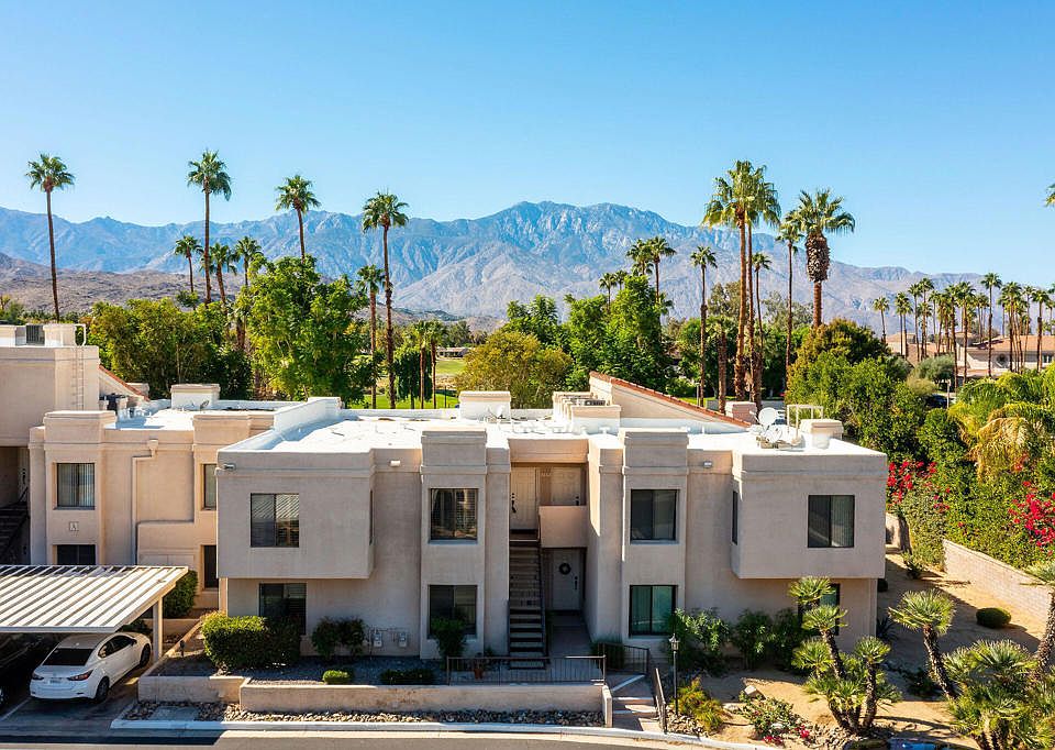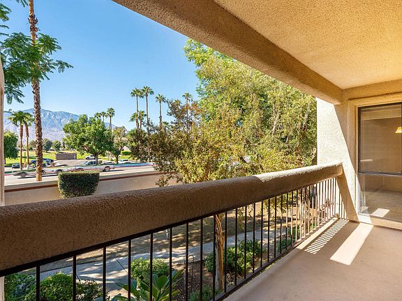 Situated within the beautifully maintained community of Canyon Shores, this inviting two-bedroom, two-bath residence offers comfort, style, and an exceptional desert lifestyle -- with the added advantage of Fee Land, meaning you own the land.Perfectly positioned next to the CV Link, the property is surrounded by tranquil lakes, flowing streams, and lush landscaping, creating a serene resort-like setting. This upper-level unit features a spacious dining area, in-unit laundry, and a covered balcony that captures breathtaking mountain views.The community offers an impressive array of amenities, including five pools, seven hot tubs, four tennis courts, pickleball courts, saunas, a fitness center, and a beautifully appointed clubhouse with fireplace and community room.Residents enjoy a secure, pet-friendly environment, ideal for peaceful walks and outdoor enjoyment. With a 30-day rental minimum, this property also presents an appealing opportunity for seasonal living or investment.Discover the perfect balance of relaxation, recreation, and refined desert living at Canyon Shores.