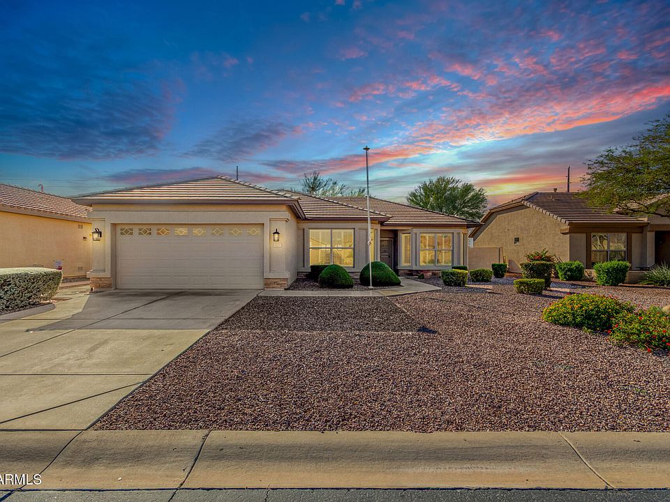 Combine this pretty, private retreat, with a community full of sports, clubs and activities, & you've found the lifestyle you've been desiring AND deserve! Welcome Home! YOUR new residence is spacious enough to have a feast for family & friends, yet cozy & comfortable enough to curl up on the couch to read a good book/watch a game or movie. The kitchen features granite counters/island/pantry/an abundance of cabinets & breakfast room. Custom shutters adorn ALL the windows to brighten up your home! Epoxy floors/TONS of cabinets & a workbench to work on projects yet keep things tidy! A 50-ft covered back patio overlooks no-maintenance turf & provides stunning views of the San Tan Mtns at sunset. Community pool/pickleball/golf/tennis/bocce/fitness center/clubhouse to make your life complete!