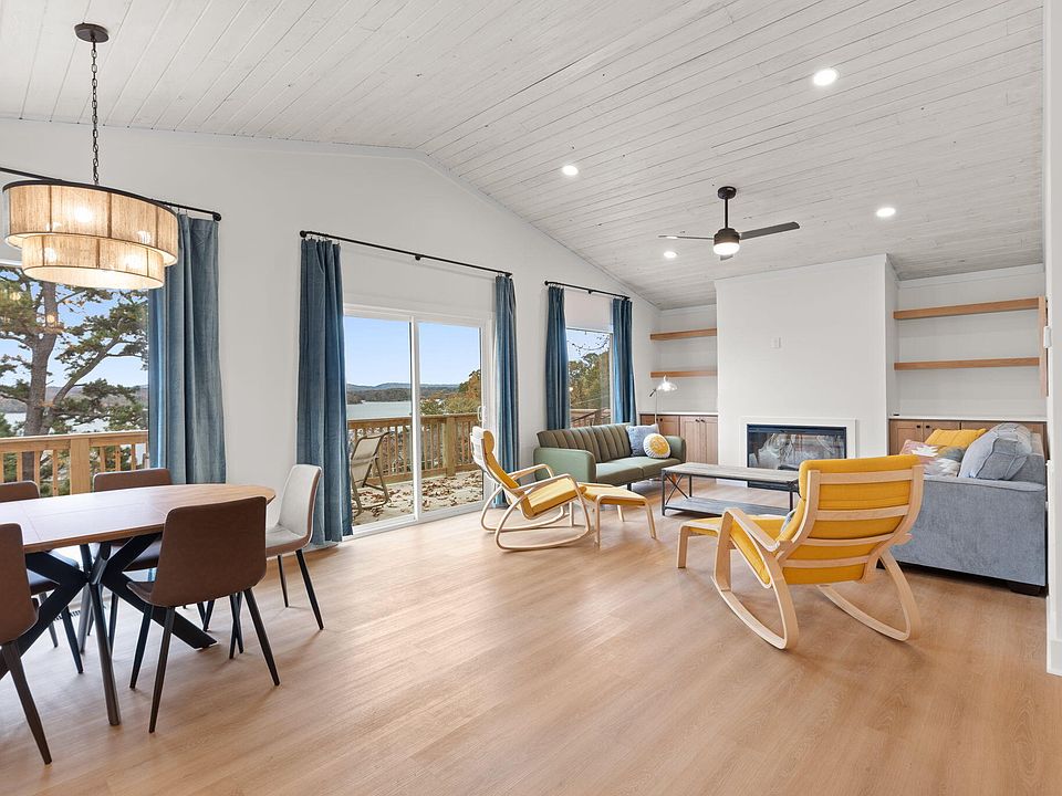 Step outside to a new deck overlooking the lake, perfect for entertaining or relaxing while taking in peaceful sunrise and water views. The open-concept living area is filled with natural light and showcases stunning lake vistas from every angle.