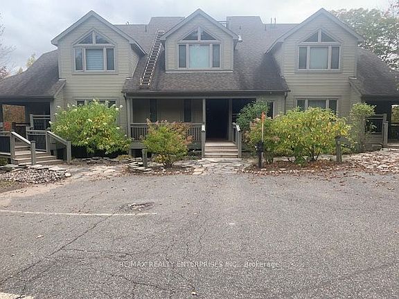 Welcome to 3521 Grandview Forest Hill Drive where serene views of Cookson Bay meet the comfort and charm of Muskoka living. This spacious ground-level Condo Townhouse (no stairs required) offers 2 bedrooms, 2 bathrooms, and an exception sense of privacy, surrounded by mature forest and accented by a classic Muskoka stone walkway. Inside, the open concept floor plan is thoughtfully designed, featuring soaring ceilings, floor-to-ceiling windows, 100% wool wall to wall carpeting from Elte and a cozy woodburning fireplace. Step out onto your private double sized deck overlooking the bay for a peaceful retreat year-round. The recently renovated chef's kitchen is a true highlight, boasting granite countertops with breakfast bar seating, stainless steel appliances, and engineered hardwood flooring. Both bedrooms are generously sized with large windows, double closets, and a 4-piece ensuite in both the primary and secondary bedrooms, offering a comfortable and relaxing sanctuary. The Master Bathroom is recently renovated with large walk-in shower, custom cabinetry, with quartz countertop. 2nd Bathroom also recently renovated. With ample storage throughout and double sized locker, this condo blends style with practicality. Outside your door, enjoy access to the community swim dock or stroll along scenic walking trails. The Grandview community is perfectly situated near renowned golf courses like Grandview Golf Club and Deerhurst Highlands, Hidden Valley Highlands Ski Area, and the breathtaking natural beauty of Algonquin and Arrowhead Parks. Just minutes to Highway 60 and downtown Huntsville, convenience meets Muskoka Tranquility. Whether you're looking for a year-round residence or a seasonal getaway, 3521 Grandview Forest Hill Drive offers the perfect blend of relaxation, recreation and community.