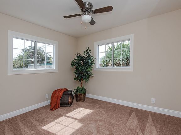 Pride of ownership in this beautiful one story remodeled, move in ready home. This home features 3 bedrooms and 2 bathrooms with newer windows, smooth vaulted ceilings, recessed lighting, beautiful lighting fixtures, crown moulding, hardwood-like flooring and carpeting in the bedrooms. The beautiful kitchen includes newer granite countertops, plenty of counter space and cabinets and a granite breakfast bar which opens to the dining room. The home includes an indoor laundry room off the kitchen. The living room opens to the beautiful backyard with a covered patio, lush grass and fruit trees. Irrigation system in the front and back yards including flower beds.
