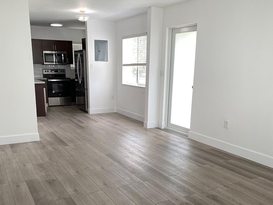 Newly upgraded duplex, new kitchen with all new appliances, dish washer, stove, microwave and refrigerator. New blinds, hurricane doors and windows, faux wood floors, new bathroom fixtures and flooring, new electrical and plumbing, ac and titan water heater. Exterior has parking space for two cars, and additional parking on the street. Duplex is fenced in with its own private back yard. Owners pay for water, alarm monitoring and monthly upkeep of yard. Small or medium pets are allowed with a one time fee of 300.00. Tenant is responsible for spraying for fleas in the yard and maintaining it clean and odor free. This is a non smoking unit.