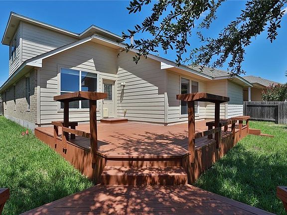 Beautiful well maintained home in desirable Village at Mayfield Ranch community. Fresh paint and new carpets in all bedrooms. Amenities abound with convenient location, great RR schools, community pool, parks, trails, and more! Close to I-35, and 183 for commuting. Spacious 2 story floorplan with tile and wood laminate flooring. Fireplace in living room. Island kitchen and formal dining room. Great deck in backyard for entertaining and greenspace directly behind for added seclusion. Call before it's too late!