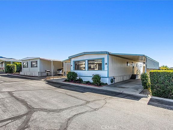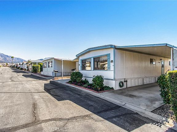 Discover the serenity of 55+ living in the picturesque setting of El Dorado Palms Mobile Home Estate, nestled on the North Bench of Yucaipa. Embrace stunning mountain views from the charming front porch of this beautifully maintained manufactured home. This 2-bedroom, 2-bathroom residence offers a comfortable and inviting space, ideal for relaxed living. The property comes complete with essential appliances, including a washer, dryer, and refrigerator, making it move-in ready for your convenience. Convenience is at your doorstep, with shopping, dining, and the allure of Oak Glen just a stone's throw away. This tranquil community provides the perfect blend of peaceful surroundings and easy access to amenities. Moreover, the mobile park offers the added benefit of low space rent, ensuring a cost-effective and enjoyable lifestyle. Don't miss the opportunity to make this delightful home in El Dorado Palms your own. Experience the comfort, convenience, and breathtaking views this 55+ community has to offer.