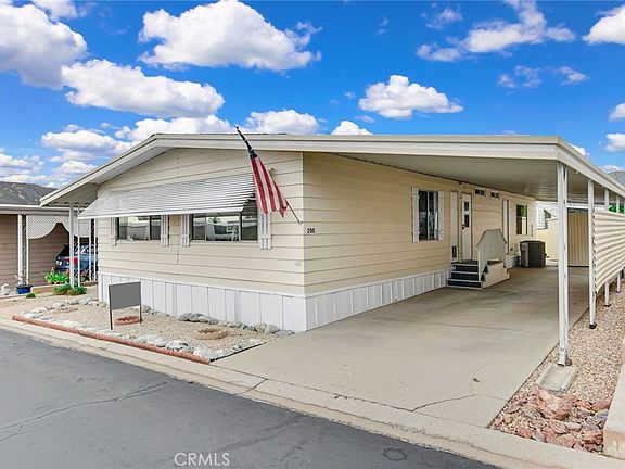 Newly remodeled home nestled in a 55+ Community in the beautiful city of Yucaipa. Lovely home offers 2 bedrooms, 2 bathrooms, a small patio, large porch, carport big enough to fit 2 cars, as well as, 2 sheds for easy storage. All new plumbing supply lines! Beautiful mountain views, quiet neighborhood yet still close to the many things Upper Yucaipa has to offer.