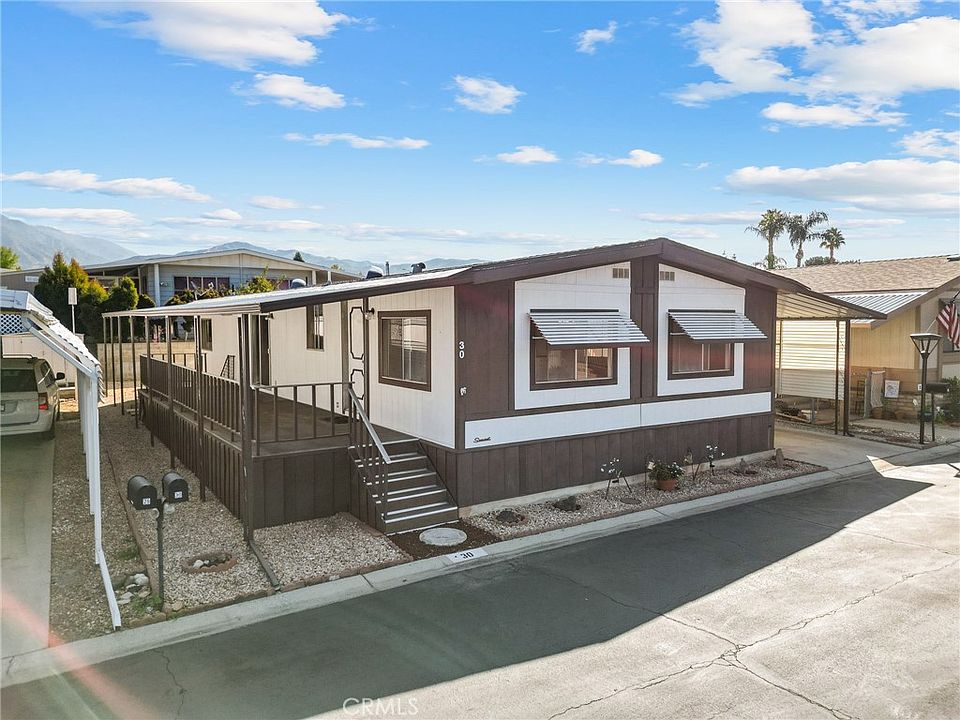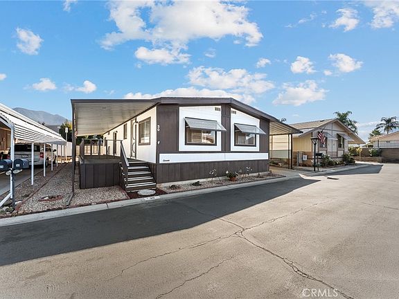 Pick your flooring and pack your bags, this beauty is ready and waiting for YOU! Located in the premier senior (55+) mobile home park of El Dorado Palms, this beautifully maintained and spruced up 2 bed/ 2 bath home is the ideal place to relax and enjoy the serenity of senior living! At 1440 sq ft it has ample space for your treasures and hobbies! Don't sweat the current lack of flooring, the seller is offering a $5K CREDIT TOWARDS THE FLOORING OF YOUR CHOICE! Prefer to apply that $5k to closing costs or trim it off the purchase price? No problem! No need to buy new appliances either, this home comes equipped with a refrigerator, washer, dryer, gas range, and hood! The other big ticket items are relatively new to boot, ~7 yr old roof, ~3 yr old HVAC, ~3 yr old exterior paint, and ~3 yr old water heater! Additional nice-to-have features include new LED light fixtures, new cabinet hardware, fresh interior paint, vanity nook in the MBR, covered patio/ porch, 2-car covered carport, soaking tub, laundry room, 2 storage sheds, and so much more! Schedule a showing today, this one won't be around for long!