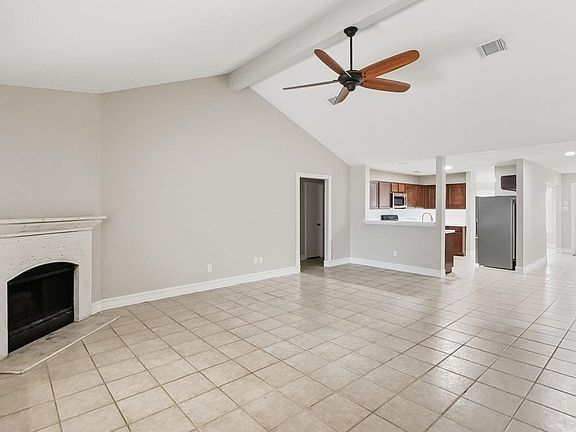Great location! This charming home offers a warm and inviting living room with a cozy fireplace creating a great atmosphere for gatherings or quiet evenings. The kitchen boasts ample cabinetry, all appliances including a refrigerator, and an easy flow, making it ideal for everyday living and entertaining. The spacious primary suite provides a layout designed to maximize privacy between it and the secondary bedrooms. Throughout the home, durable tile and vinyl plank flooring, ceiling fans, and tasteful touches add to its charm. Outside, the fenced backyard offers much space for play, gardening, or simply relaxing under your large covered patio. The property also includes a washer/dryer, a water filtration system and a 2-car garage. Don't miss out - book your tour today!