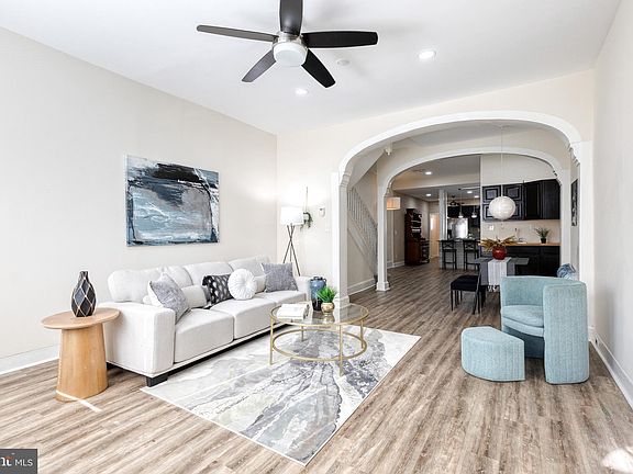 Just blocks from Patterson Park, this charming Highlandtown rowhome offers approximately 1,500 sq. ft. of stylish living space. The open-concept main level features high ceilings, elegant columns, and graceful arches that create a sense of openness and character. A spacious living and dining area includes a convenient wet bar/butler station, perfect for entertaining. The beautifully updated kitchen offers ample cabinet space and modern finishes, while a full main-level bathroom adds extra functionality. Upstairs, discover three generous bedrooms and a second full bathroom, along with plenty of closet and storage space throughout. The lower level provides additional storage and a laundry area. Enjoy city living at its best with easy access to shops, restaurants, and the vibrant energy of Patterson Park just around the corner. Welcome home!