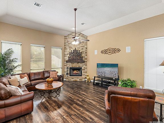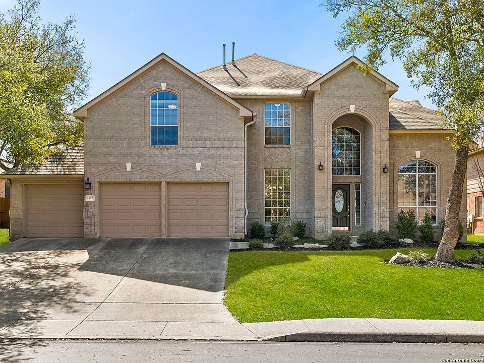 ***OPEN HOUSE SUNDAY MAY 4 12 - 3PM***Stunning 4-bedroom, 3-bath brick and masonry home in a highly sought-after school district! This spacious 3,561 sq. ft. property sits on a quarter-acre lot, welcoming you with a grand foyer and soaring ceilings. Two large living areas showcase an updated stone veneer fireplace, while the kitchen boasts 42-inch cabinets, granite and Silestone countertops, (with a full-size refrigerator that conveys) and a convenient work station. Enjoy abundant natural light throughout, plus a downstairs bedroom and full bath-ideal for guests or multi-generational living. A generously sized laundry room adds extra convenience. Relax outdoors on the covered patio or unwind in the private hot tub. This home combines comfort, style, and excellent curb appeal-all in a neighborhood offering top-tier schools. Don't miss this move-in-ready gem!