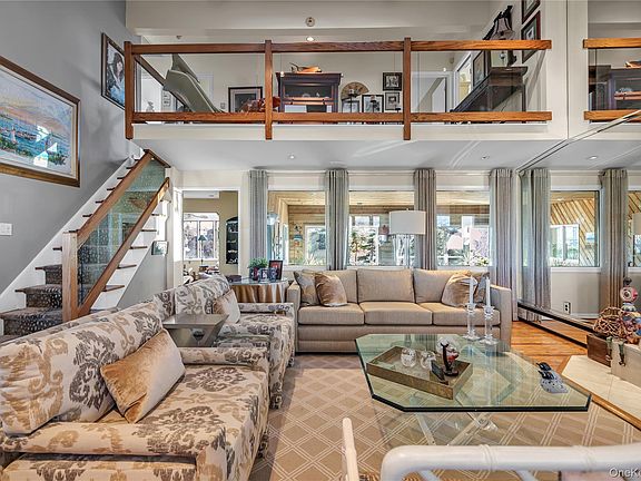 This premier waterfront residence sits secluded at the very end of a beautifully tree lined street nestled in the Estates section of Oceanside.The property is situated on a generous quarter-acre lot with over 160 feet of canal frontage. The home features four bedrooms and 2.5 baths, including a primary bedroom with an en suite bathroom, walk in closet, and a south-facing balcony overlooking the wide canal leading to Parson's creek and the Middle Bay. Hardwood floors span the interior, complemented by two wood-burning fireplaces that add warmth and character. As you walk in the front door, you’re greeted by abundant natural light from two skylights set high in the 15-foot ceilings, creating a bright, airy entry. An indoor pool, which is heated and cedar-lined, make it a truly one of a kind property- perfect for year-round swimming and entertaining. The pool connects to a back patio with sliders, creating seamless flow for hosting guests in any season. The second floor boasts a balcony overlooking the living room, and every room benefits from abundant natural light through skylights throughout the home. The built-in gas stove top, granite countertops, grill, and sink on the secondary deck provide additional outdoor cooking and entertaining options. The property includes a two-car garage and substantial expansion potential. Outdoor living is highlighted by a private backyard framed by mature trees—an ideal setting for relaxation and gatherings by the water. Waterfront amenities include a boat lift and two docks, with a bulkhead that was replaced after Sandy, ensuring sturdy waterfront infrastructure. The home has been meticulously cared for and maintained, reflecting more than forty years of attentive ownership. The backyard is tranquil and perfect for entertaining, with serene views of the water and a wider canal segment that offers straightforward access straight out to the Middle Bay. This residence combines timeless charm with modern conveniences in a sought-after Oceanside location, offering privacy, convenience, and a lifestyle focused on coastal living.