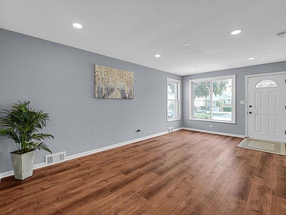 STUNNING REHAB in this terrific ALL BRICK ranch home! The charming front porch welcomes you in to this gorgeous 1-story home featuring NEW flooring, NEW windows, NEW lighting, neutral paint colors and white trimwork throughout. The bright living room with double windows and recessed lighting. The kitchen has NEW countertops, NEW cabinetry, NEW stainless steel appliances and dining area with large windows for maximum daylight! The four bedrooms have all been renovated! Two FULL baths have been beautifully updated with NEW vanities, custom lighting and NEW walk-in showers!! Downstairs is a spacious family room/rec room, large bedroom, additional space for playroom/media/office, and a laundry room with utility sink and storage! NEW HVAC! Detached garage on with plenty of parking in the long concrete driveway. Don't miss this one!!