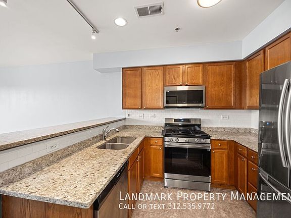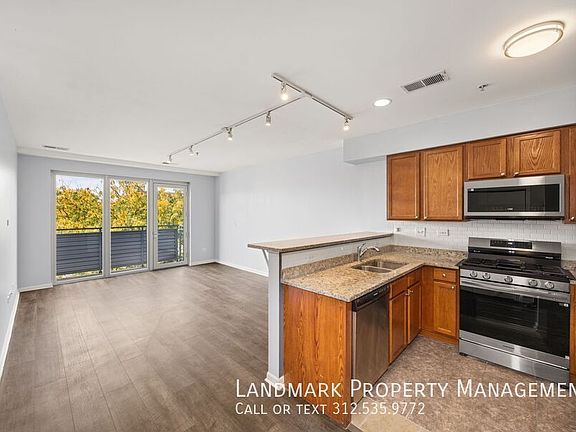 Welcome to this stunning 1-bedroom, 1-bathroom residence located in the heart of Chicago, IL. This home boasts a range of high-end features including a balcony, garage parking, and stainless steel appliances. The kitchen is a chef's dream with granite counters and hardwood cabinets. The unit is equipped with central air conditioning for your comfort and convenience. The interior showcases hardwood and tile floors, floor-to-ceiling windows, and large windows that flood the space with natural light. The unit also includes a laundry facility for your convenience. The rent includes one parking spot, trash removal, water, and landscaping services. Additionally, the unit comes with a storage closet for extra space. Please note, this is a no-pet property. Experience the best of city living in this beautiful home.