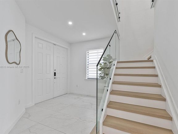 This fully remodeled home blends modern design, quality upgrades, and exceptional outdoor living in one of Hialeah’s most desirable private communities. Inside, the residence features a complete renovation with bright open spaces, large-format porcelain flooring, warm wood-style accents, and fully upgraded impact windows for security, efficiency, and sound reduction. The open-concept living and dining areas include recessed LED lighting, modern window treatments, and a custom glass-railing staircase that adds architectural sophistication. A dedicated office/flex room provides valuable versatility for work, study, or multi-use needs. The backyard is the highlight, offering a true Florida outdoor oasis. A custom pergola with exposed beams, stone details, and integrated lighting creates a perfect shaded lounge area. The fully equipped outdoor kitchen includes a charcoal grill, gas grill, built-in refrigerator, ice chest, bar seating, and premium stone countertops ideal for gatherings and weekend cooking. The property sits directly on a peaceful lake with a relaxing zen fountain, providing a serene backdrop for mornings, sunsets, and outdoor dining. Additional features include a two-car garage, upgraded lighting fixtures, modern blinds, beautiful landscaping, and a convenient location near top schools, shopping, dining, and expressways. This move-in-ready home offers modern comfort, style, and an outstanding lakeside lifestyle rarely found on the market.