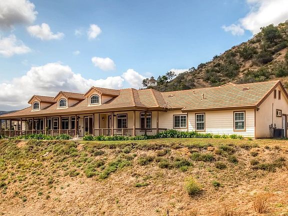 Custom Built single story ranch home on a private easement with gorgeous views. Top quality craftsmanship. Granite counter-tops, open kitchen, including double ovens, warming drawers, built in fridge, and a huge island. Butlers pantry off the kitchen offers more storage and a wine fridge. Kitchen opens up to large family room. Home has 3 fireplaces. Master Bedroom has dual sided fireplace, opens to large master bath featuring his and her bathrooms, large soaking tub, separate shower, walk in closets. Formal Living room has tall open beam ceilings. Large fireplace. Home has a breakfast nook and a formal dining room. There is also a mud room between the garage and house. Covered patio porch to take in the views. Huge driveway with plenty of parking. Property is only 5 min off highway 15. Four stall structure can be used for horses, just needs pipe coral. Metal workshop not included. (Has separate driveway) Rent includes gardener and water. Rent: $3800 unfurnished, $4000 furnished