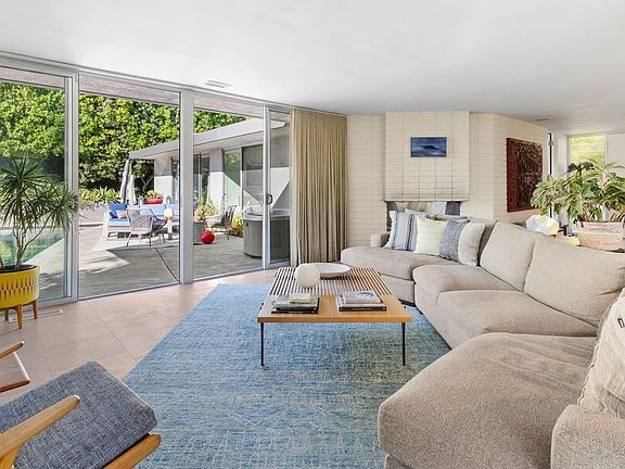 Tucked along the quiet, coveted pocket of the Beverly Ridge enclave within the Mulholland Scenic Corridor, this updated mid-century residence embodies the easy, low-profile elegance that made the era timeless. Sited on the canyon rim with a west-facing rear yard designed to absorb sunsets night after night, the home spans approximately 2,301 square feet with 3 bedrooms, 2 bathrooms, a den off the primary that can flex as a nursery or study, and a confident single-story footprint that reads with ease. Through a bamboo-lined entry and a facade that holds its original stacked-brick geometry facing the street, the home maintains architectural integrity from the very first glance. Inside, floor-to-ceiling glass doors open beautifully into the outdoors and create the kind of uninterrupted indoor/outdoor life that is rarely executed this well on a canyon lot. The flow is effortless bedrooms step out to private seating terraces, the living spaces open directly to the yard, and the home orients all social life to the view line. The rear grounds capture the full drama of the canyon: a pool and hot tub at the edge, terrace areas for dining and lounging, and enough privacy and exposure to make sunsets feel cinematic whether you're in the water or inside with glass open. The gentle quiet of the corridor punctuated by hawks riding the updrafts of the canyon makes it feel worlds removed while remaining minutes to the conveniences along Mulholland and nearby Glen Center. Life here is anchored by location and lifestyle: a discreet street prized for architecture and rare sidewalks in the hills, access to top schools and hiking arteries, and proximity to beloved neighborhood spots from sushi and live jazz to a boutique grocer and everyday essentials without sacrificing the calm of the hills.
