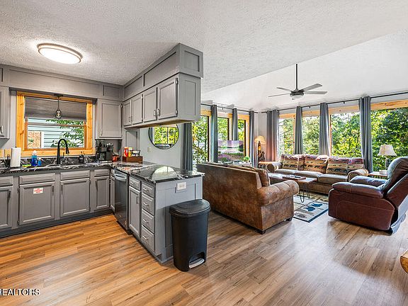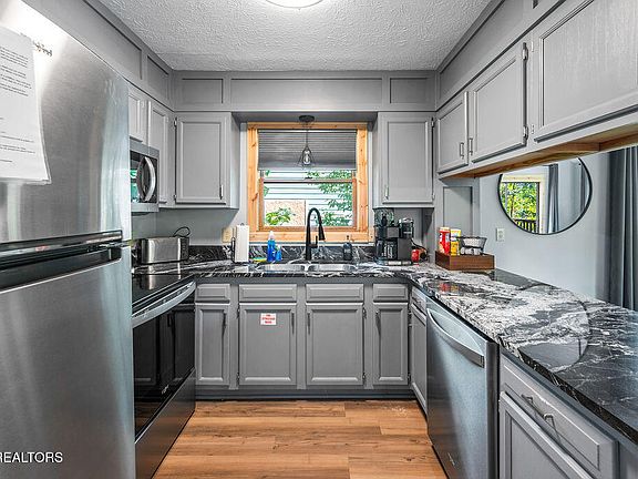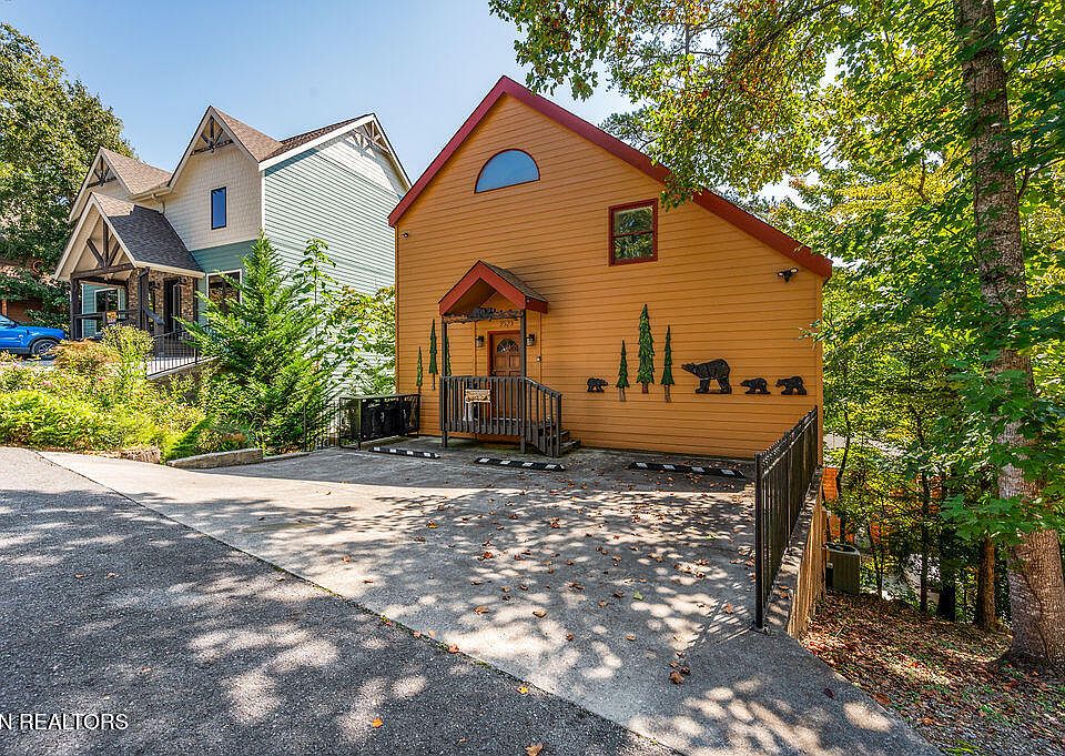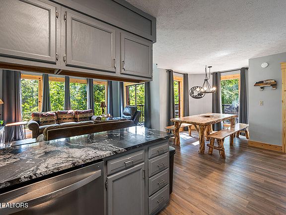 Tucked inside the desirable Brookstone Village community just three minutes from the Parkway in the heart of Pigeon Forge, this beautifully updated three-bedroom, three-bath cabin offers the perfect blend of mountain charm and modern comfort. Spanning three levels, the home is ideal for either a serene personal retreat or a top-performing short-term rental. Recent upgrades include all-new interior and exterior paint, new flooring throughout, granite countertops in the kitchen and bathrooms, updated sinks, toilets, hardware, shiplap accents, trim, lighting (interior and exterior), and new furniture and linens throughout—creating a fresh, turnkey experience for the next owner. The main level features an open-concept living room with vaulted ceilings, abundant natural light, and a cozy cabin feel anchored by warm wood tones and updated finishes. The kitchen is well-appointed with upgraded cabinetry, granite counters, stainless appliances, and a dedicated dining space. Each of the three floors includes its own private bedroom and full bathroom, offering maximum flexibility and privacy for guests. The oversized primary suite occupies the top floor and features a spacious layout with a soaking tub, full ensuite bath, and custom skylight window treatments with added light-blocking for comfort and rest. Downstairs, the fully outfitted game room makes the lower level a true highlight—featuring two upright arcade gaming systems, a pool table, bunk beds, and extra seating, perfect for entertaining kids and adults alike. This level also opens to a private deck with outdoor furniture and a hot tub. The main-level deck includes outdoor dining space and a gas grill—perfect for al fresco evenings. The home is currently self-managed on Airbnb and performs well, supported by its exceptional location and community amenities including a seasonal pool and well-maintained roads. With thoughtful design, functional upgrades, and standout guest amenities, this home is a rare find just minutes from Dollywood, The Island, and the Smoky Mountain attractions that make Pigeon Forge a year-round destination.